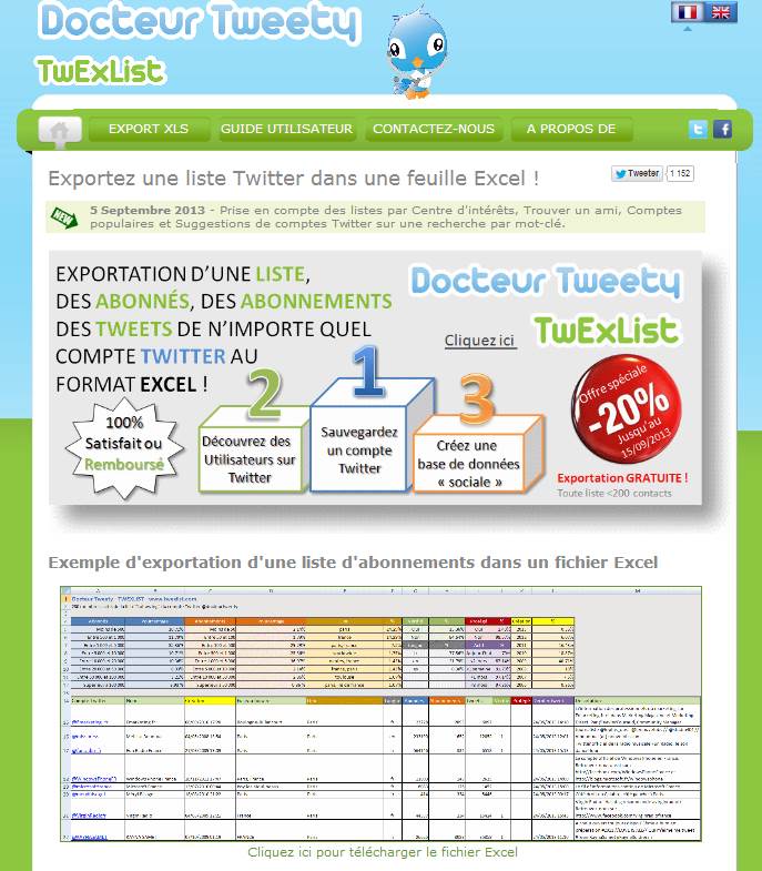 Aussi, une des 3 solutions conçues par Docteur Tweety, permet facilement de requêter la base de données Twitter et d’obtenir des listes dont le contenu est pré-analysé par TwExList. L’ensemble des abonnés, abonnements ou tweets d’un compte Twitter constituent également une liste au sens Twitter et sont exploitables par Docteur Tweety.